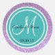 Purple Glitter & Teal Blue Wedding Monogram Classic Round Sticker