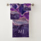 Elevate your bathroom ambiance with our chic bath towel set, showcasing a stunning purple agate design with a touch of glitter. Personalizable optional monogram.