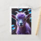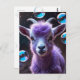 Send a heartwarming message with this enchanting postcard featuring a beautiful purple goat. illuminated by soft light and playful, iridescent bubbles.
