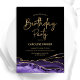 Purple, black and gold agate birthday party invitation. Elegant modern design featuring watercolor agate marble geode background, faux glitter gold and typography script font. Trendy invite card perfect for a stylish women's bday celebration. Printed Zazzle invitations or instant download digital printable template.