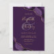 A purple watercolor agate design trimmed with faux gold glitter appears in two corners of this elegant design. Personalise it with the couple's names in gold-coloured handwriting script over a large ampersand. Add the wedding details in gold-coloured copperplate and italic fonts on a rich plum background. The reverse side features a matching purple and gold agate design.