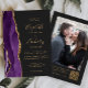 Purple Gold Agate Dark Photo QR Code Wedding Invitation