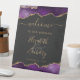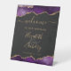 Purple Gold Agate Dark Wedding Welcome Pedestal Sign