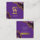 Purple & Gold Agate Geode Glitter Monogram Marble Square Business Card