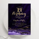 Purple and gold agate 21st birthday party invitation. Elegant modern design featuring watercolor agate marble geode background, faux glitter gold and typography script font. Trendy invite card perfect for a stylish women's bday celebration. Printed Zazzle invitations or instant download digital printable template.