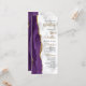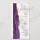The left-hand edge of this elegant modern wedding program features a purple watercolor agate border trimmed with faux gold glitter. The customisable text combines gold-coloured calligraphy script and black sans serif fonts on a grey and white marble background.