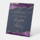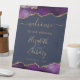 Purple Gold Agate Navy Blue Wedding Welcome Pedestal Sign