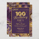 Purple Gold Agate Surprise 100th Birthday Party Invitation