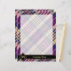 Purple, golden yellow and blue tartan design. Seamless pattern. Custom text and monogram.
