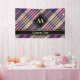 Purple, golden yellow and blue tartan design. Seamless pattern. Custom text and monogram.