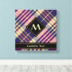 Purple, golden yellow and blue tartan design. Seamless pattern. Custom text and monogram.