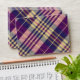 Purple, golden yellow and blue tartan design. Seamless pattern.