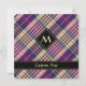 Purple, golden yellow and blue tartan design. Seamless pattern. Custom text and monogram.
