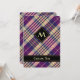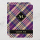Purple, golden yellow and blue tartan design. Seamless pattern. Custom text and monogram.