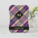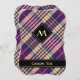 Purple, golden yellow and blue tartan design. Seamless pattern. Custom text and monogram.