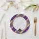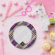 Purple, golden yellow and blue tartan design. Seamless pattern. Custom monogram.