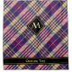Purple, golden yellow and blue tartan design. Seamless pattern. Custom text and monogram.