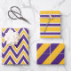Purple, Gold, and White Chevron & Stripe Pattern Wrapping Paper Sheet