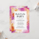 Trendy and modern Bachelorette or Hen's Party invitation featuring purple and gold alcohol ink pattern and matching back page.