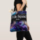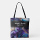 Bridesmaids have a lot to carry and this elegant bag will hold it all. Purple, gold, black and aqua accent this beautiful design that says 'bride squad' with the name of the bridesmaid on the front, and the names of the bride and groom and wedding date on the back will make this bag a keepsake for years to come. All words are customisable.