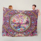 Purple Gold Blue Persian Floral Flowers Peacock Fleece Blanket