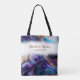 Bridesmaids have a lot to carry and this elegant bag will hold it all. Purple, gold, and aqua accent this beautiful design that says 'bride squad' with the name of the bridesmaid on the front, and the names of the bride and groom and wedding date on the back will make this bag a keepsake for years to come. All words are customisable.
