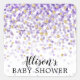 Pretty baby shower favour seal featuring trendy purple & gold confetti