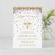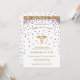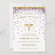 Nursing School Graduation Invitation with purple and gold glitter confetti and a gold caduceus symbol against a white background. Personalise the text for your own RN's graduation ceremony! Note: The gold glitter is a printed effect, no actual glitter will be used in making these invitations.