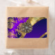 PERSONALIZE this classy chic elegant stylish vintage gold damask pattern on a purple background, a modern swirl design ribbon and faux crystal rhinestone jewel graphic, with your own text, name or monogram, initials .