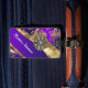 PERSONALIZE this classy chic elegant stylish vintage gold damask pattern on a purple background, a modern swirl design ribbon and faux crystal rhinestone jewel graphic, with your own text, name or monogram, initials .