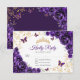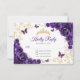 Purple gold floral Quinceanera RSVP reply card. Features, script font, gold butterflies, watercolor roses and tiara. Perfect for an elegant princess style glam celebration. Personalize with your own details.