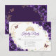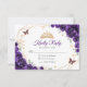 Purple gold and white floral Quinceanera RSVP reply card. Features, script font, gold butterflies, watercolor roses and tiara. Perfect for an elegant princess style glam celebration. Personalize with your own details.