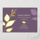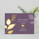 Unique botanical wedding save the date invitation frames your announcement details with a border of elegant gold foil fall leaves. Your save our date details are set in a stylish traditional serif type on a solid plum purple background. The card reverses to your engagement photo. Perfect for fall autumn, rustic or garden theme weddings in September, October and November. To see more designs like this visit Do Tell A Belle on Zazzle at www.zazzle.com/dotellabelle