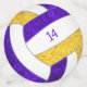 This fun volleyball birthday party confetti features girly purple, gold and white volleyballs with customisable "Happy Birthday" greeting and girl's name - by katz_d_zynes