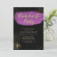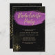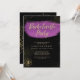 Throw the Bride a Bachelorette Party she'll never forget with this simple yet stylist black purple and invitation with gold glitter accents.