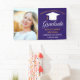 This elegant senior portrait graduation party banner features chic white script on a purple background next to your high school or college graduate photograph for the senior class of 2025. Customise with your photo, name and class in gold script under the lovely calligraphy for your celebration.