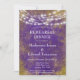 A richly coloured purple wedding rehearsal dinner invitation featuring a gold faux metallic distressed background with festive hanging lights.