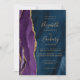 Purple Gold Navy Blue Agate QR Code Wedding Invitation