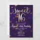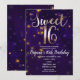 Purple & Gold Night Under The Stars Sweet 16 Party Invitation