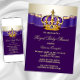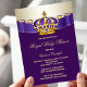 Elegant purple and gold baby shower invitation with beautiful purple and gold crown and purple and gold banner on a pretty purple and gold background. You can easily customize this beautiful purple and gold royal baby shower invitation by adding your event details in the font style and color, wording, layout, etc., of your choice.