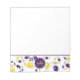 This fun soccer themed notepad features randomly arranged purple, gold & white soccer balls of varying sizes at its bottom edge with easy-to-personalise name & monogram on a coordinating purple circle pendant plus jersey number on one of the soccer balls - by katz_d_zynes
