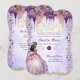 Purple Gold Sparkle Quinceanera Dress Floral Roses Invitation