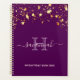A stylish girly and feminine dark purple coloured background with shining faux gold stars dripping, drips. Personalise and add your name, monogram letter and a title. A planner for organising business clients, appointments, to do lists, or your daily life. The name is written with a large trendy hand lettered script with swashes. To keep the swashes only delete the sample name, leave the spaces or emoji's in front and after the name. Light pink and purple letters.