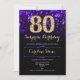 Surprise 80th birthday party invitation. Elegant purple design with faux glitter gold. Features stylish diamonds, bokeh lights and script font. Men or women bday invite. Perfect for a stylish adult birthday party. Personalise with your own details. Message me if you need further customisation. Printed Zazzle invitations or instant download digital printable template.