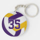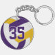 This team colours volleyball themed keychain for girls or boys features a realistic looking purple, gold and white volleyball upon which you can customise the player's name, jersey number and court position, plus school or club name and mascot name in a varsity letter style font - by katz_d_zynes