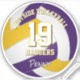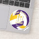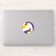 This team colours volleyball sticker for girls or boys features the realistic image of a volleyball that has purple, gold and white panels - customise the player's name, jersey number, team name and mascot name - by katz_d_zynes