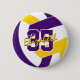 This team colours volleyball button features the image of a purple, gold and white volleyball, upon which you can personalise the athlete's jersey number and name - by katz_d_zynes