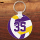 This team colours volleyball keychain features the image of a purple, gold and white volleyball on the front and a simple white volleyball on the back - personalise with the athlete's jersey number on the front and name and team name on the back - by katz_d_zynes