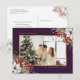 Purple Gold Watercolor Botanical Photo Christmas Holiday Postcard