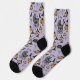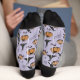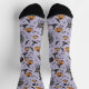 These artsy yet elegant Halloween socks feature hand-drawn illustrations in black ink by Nathalie Portet. Against a beautiful purpe background, images of Victorian baby carriages, witch hats, black crows, pumpkins, spiderwebs, bubbling cauldrons and tiny speckled mushrooms adorn these crew socks. Ideal for Halloween Birthdays, New Mother, etc.